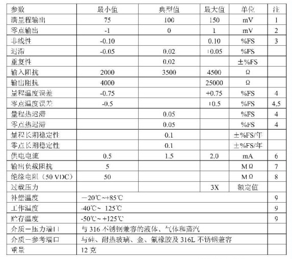 82 型壓力傳感器是一種經(jīng)過補(bǔ)償、且與介質(zhì)兼容的硅壓阻式傳感器,其外殼采用19mm外徑316不銹鋼封裝結(jié)構(gòu)。外界壓力通過316不銹鋼膜片及內(nèi)部灌充硅油傳遞到傳感器件敏感元件上。82型壓力傳感器可應(yīng)用于高性能、低壓場合。通過對陶瓷基座上的膜厚電阻進(jìn)行激光修阻,可以實(shí)現(xiàn)對傳感器溫度補(bǔ)償及零點(diǎn)偏差調(diào)整。陶瓷基底上還提供了一個(gè)經(jīng)激光修正的增益調(diào)節(jié)電阻使傳感器在經(jīng)過外部差分電路放大后達(dá)到統(tǒng)一的輸出值,并可控制在±1.0%互換性范圍內(nèi)。