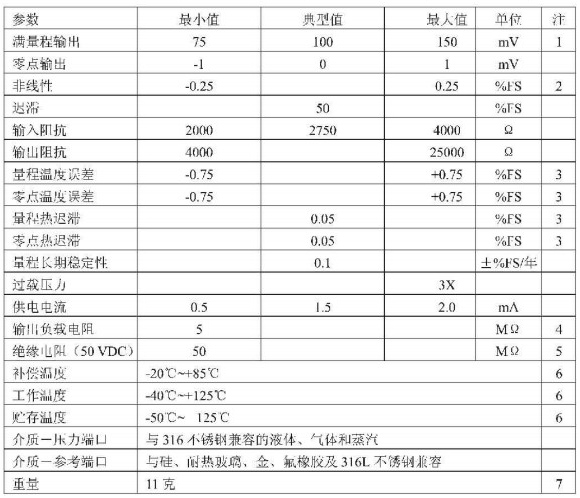 87型超穩壓力傳感器是采用微機械加工技術制造而成的硅壓阻式壓力傳感器,它適用于OEM的應用領域,可測量腐蝕性介質。傳感芯片貼裝于TO型基座上,并通過電阻焊方式焊接到316不銹鋼外殼上。316不銹鋼波紋膜片焊接在外殼上,在膜片與傳感芯片之間充油少量的硅油。ISO結構通過內墻硅油在膜片與壓阻式傳感器之間傳遞壓力。通過對陶瓷補償板上的厚膜電阻的激光修正,提供一個增益調節電阻來統一傳感器的壓力靈敏度增益放大倍數。