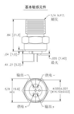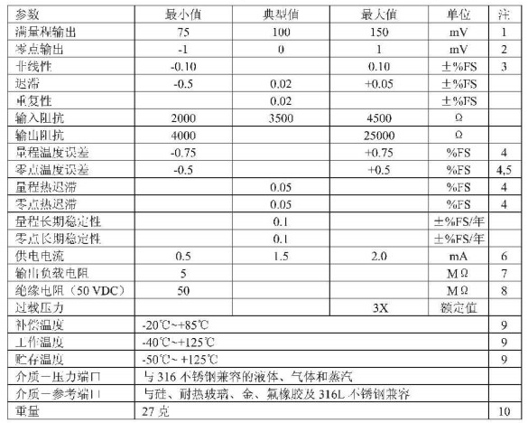 96型超穩壓力傳感器是體積小、介質兼容硅壓阻式壓力傳感器,96型壓力傳感器采用標準的1/4NPT螺紋接口,該結構使外界壓力通過316L不銹鋼膜片傳遞到傳感器敏感原件上,適用于高性能,低壓的應用場合。通過對陶瓷基座上的膜厚電阻進行激光修阻,可以實現對傳感器溫度補償及零點偏差調整。陶瓷基底上還提供了一個經激光修正的增益調節電阻使傳感器在經過外部差分電路放大后達到統一的輸出值,并可控制在±1.0%互換性范圍內。