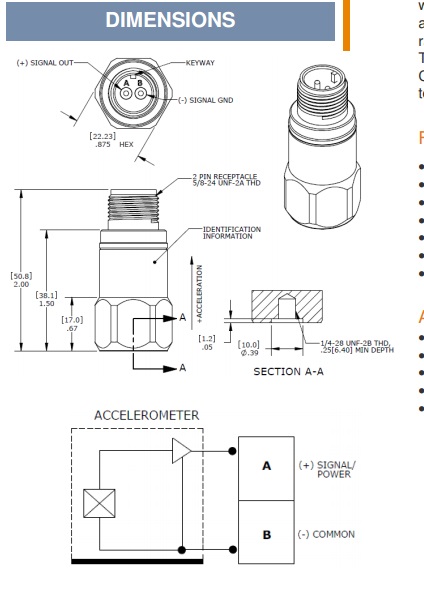 內(nèi)部屏蔽 IEPE 振動(dòng)傳感器工業(yè)狀態(tài)監(jiān)測8811-01這款加速度傳感器的動(dòng)態(tài)量程為 ±5 g 至 ±80 g,具備最高超過 10 kHz 的平滑帶寬。 8811-01 加速度傳感器采用頂端出口 MIL-C-5015 連接器,工作溫度范圍為 -55°C 至 +120°C。